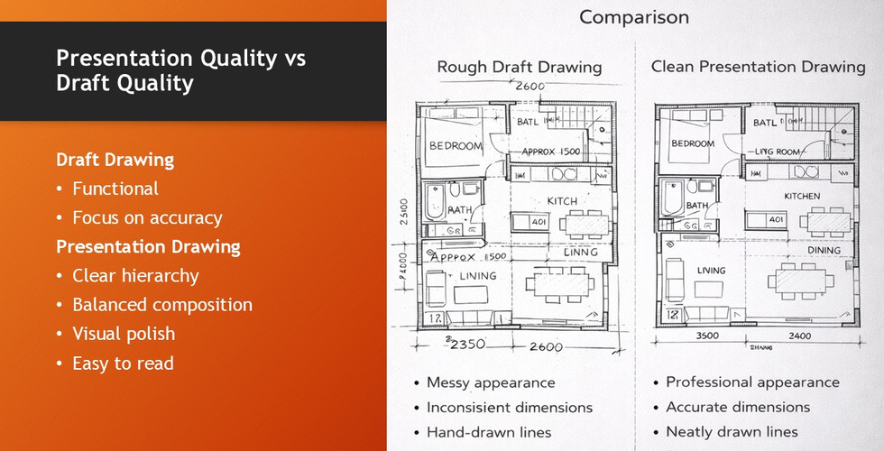 Line quality affects how easily drawings can be read and interpreted. Poor line weight or cluttered composition can obscure important information.