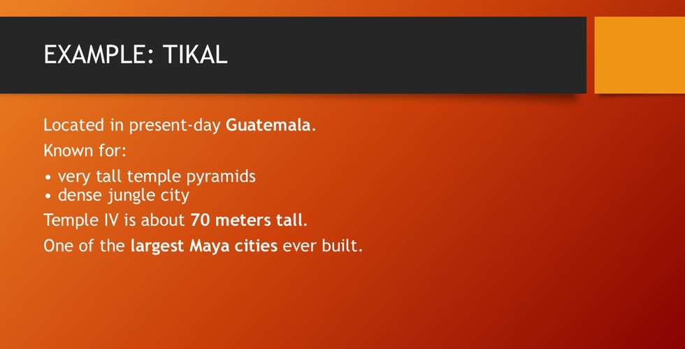 A Maya city in Guatemala with towering temples rising above the jungle canopy, used for religious ceremonies and royal burials.