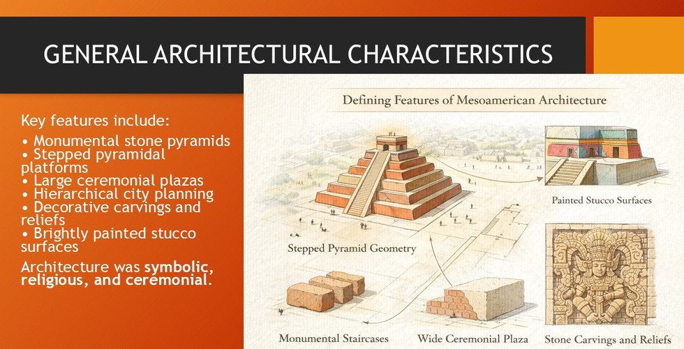 Mesoamerican architecture is known for its monumental scale and symbolic design. Many structures served religious, political, and social purposes. Some common features include:
